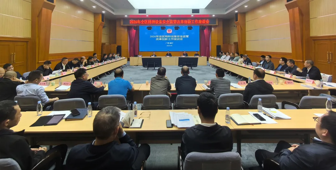 3月17日,广西市场监管局在南宁市召开2026年全区特种设备安全监管改革创新工作座谈会。会议贯彻落实全国和全区市场监管工作会议、特种设备安全监察工作会议精神,研讨新形势新要求下特种设备安全监管改革创新工作,部署2026年重点任务。